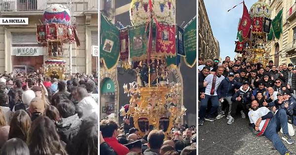 Religiosità e folklore si mescolano ancora una volta alla festa di Sant'Agata. E le Candelore tornano protagoniste di questa zona grigia delle celebrazioni agatine. Molti si sono domandati ieri cosa ci fosse dietro le parole pronunciate dall'arcivescovo di Catania, Luigi Renna, durante la sosta a piazza Stesicoro prima della tradizionale "salita dei Cappuccini". I fatti "incriminati" risalgono al 3 febbraio: la mattina della processione dell'offerta della cera e la sfilata delle Carrozze del Senato. I cerei dei pescivendoli e degli ortofrutticoli, intorno alle 9, stavano per far partire la battaglia di resistenza alla pescheria. Ma per motivi di ordine pubblico - spazi troppo ristretti rispetto alle presenze - non gli è stata permessa. C'era, infatti, una forte presenza anche di poliziotti. Questo ha creato molta delusione. Così i portatori delle due candelore hanno deciso di ritentare. E stavolta ci sono riusciti. La prova di resistenza - detta "tichetta" - è avvenuta in via Etnea poco più in alto di piazza Stesicoro. Come documentato da diversi video, che sono finiti sui vari profili TikTok dei devoti, i primi a cedere sono stati i pescivendoli con la vittoria degli ortofrutticoli. Vittoria che è stata celebrata con balli e urla. Uno dei portatori del cereo dei pescivendoli è anche svenuto, ma è stato fortunatamente un malore passeggero. La calca pare abbia creato qualche ritardo nei momenti della processione.